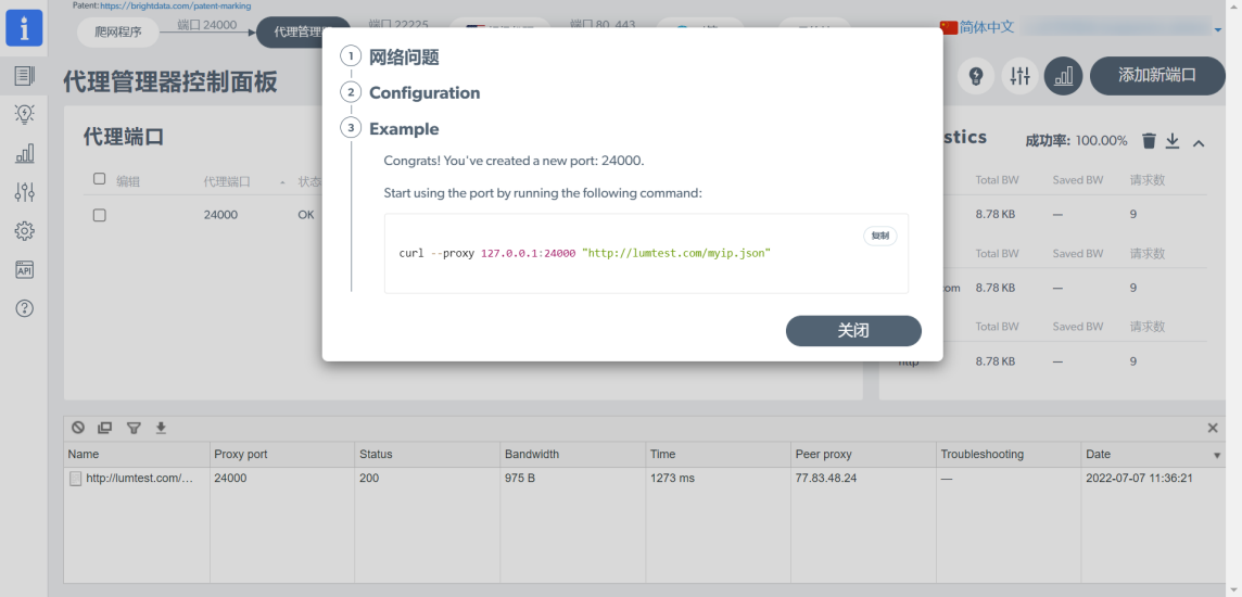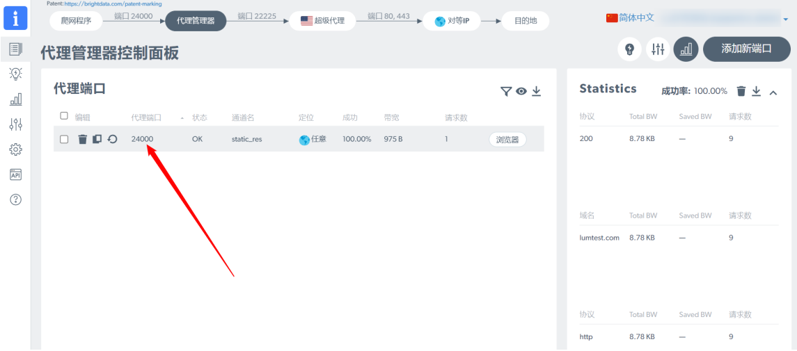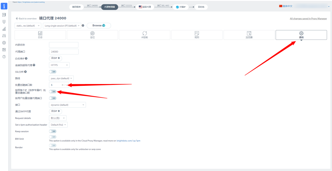 第4步、配置代理。在BrightData中生成代理信息，并粘贴到比特浏览器的代理设置中，然后进行代理 检测，检测代理IP的连通性！